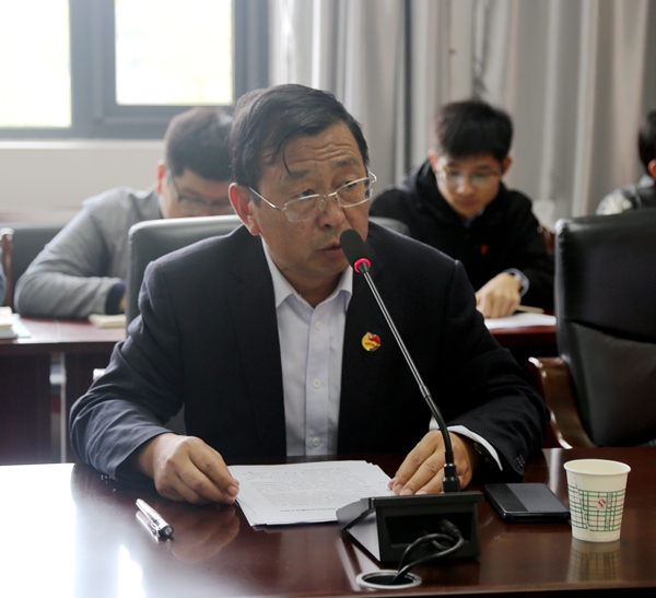 院党委书记、学院“不忘初心、牢记使命”主题教育领导小组组长黄德宝作动员讲话