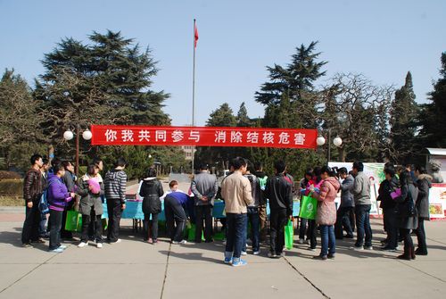 在世界防治结核病日到来之际,3月24日上午,我院与动科学院和机电学院联合校医院在北校区南门口开展“你我共同参与,消除结核危害”防治结核病宣传活动。