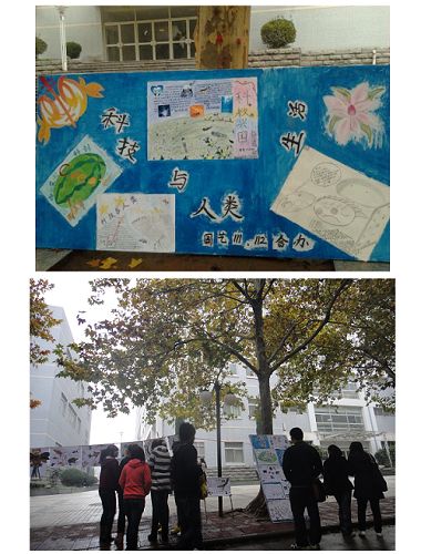 展览分3个板块:“植物嘉年华”、“变废为宝”、“人类与科技生活”。参赛选手们在活动期间精心采集校园里的树叶,花卉,草木,将普普通通的植物设计组装成一幅幅诸如bat365官网登录入口校徽“麦穗”,校训“诚朴勇毅”等形状的艺术品。有的同学将废纸盒、塑料瓶等生活垃圾通过创新与加工变成美观实用的作品。各班创办的科技画展更是五彩缤纷,最新的科技动态,科技故事充盈其中。展览吸引了不少同学驻足观看,细细品味。