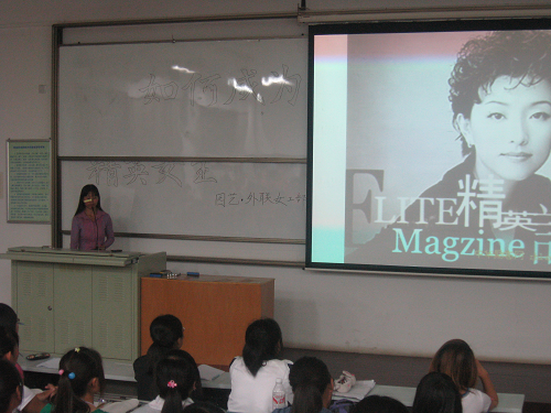 报告会伊始,武老师用幽默的女生悄悄话引题,提出了本次报告会的主题,如何成为精英女生。通过介绍杨澜、袁晓娟以及“玻璃女孩”王静的事例,从生理篇,形象篇,心里篇三方面讲述了如何做一名内外兼美的女生。她强调女生要注重身体健康,懂得关爱自己,保护自己。同时要做到礼仪与道德同行,风度与知识共存,风貌与情感相通。与此同时,要学会心理调节,乐观开朗,积极进取。最后,她通过图为并茂的形式向同学们提出了二十二条宝贵的建议,鼓励女孩子们努力完善自我,珍爱自我,接纳自我。