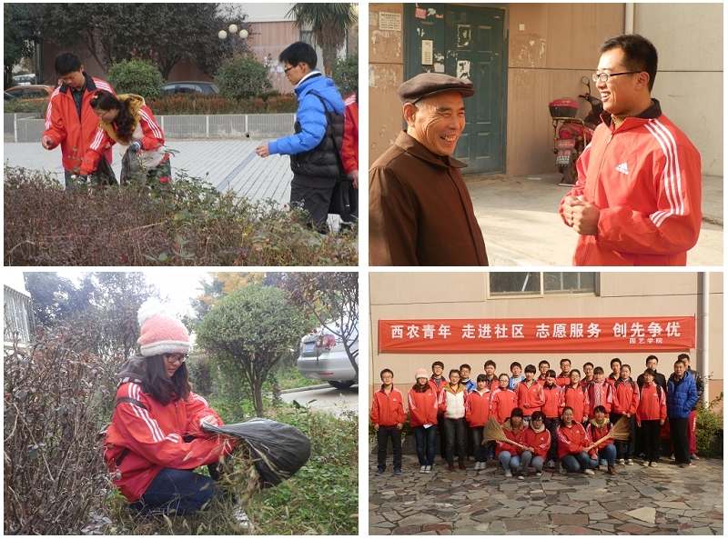 义工活动以“美化社区,关怀老人”为主要内容。到达社区后,大学生志愿者迅速分成三个小组有条不紊地开展清理花坛、收拾垃圾、清扫道路等工作。清扫活动结束后,志愿者走访了小区的部分居民,了解了小区的卫生、治安和文化活动等情况,并和小区老人们亲切交流。