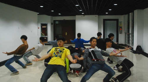 学院重视此次比赛,我院学子也积极参与其中。学院舞蹈队队长白雪和啦啦操队队长闫明佳从学院挑选舞蹈“人才”,经过了层层筛选,组建了10男10女的大舞舞蹈和1男1女小武舞蹈及10女6男的啦啦操队。组建以来,各队队长认真负责,积极组织训练。天气寒冷,但阻挡不了同学们训练的热情。在理科大楼、西区麦田旁随时可以看到他们的身影。训练期间,学院团工委书记颉登科、学院团工委学生会主席团成员及各部门副部等多次看望并指点,为他们加油鼓劲。