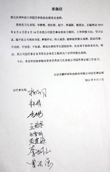 为深入了解北京京鹏环球科技股份有限公司发展现状,认识企业文化,达到学用结合,同时感恩企业捐资助学,我院学生组建“西农学子真诚回馈京鹏企业服务队”于8月5日至8月17日赴北京京鹏环球股份有限公司开展主题为“探寻企业梦”的实践活动。