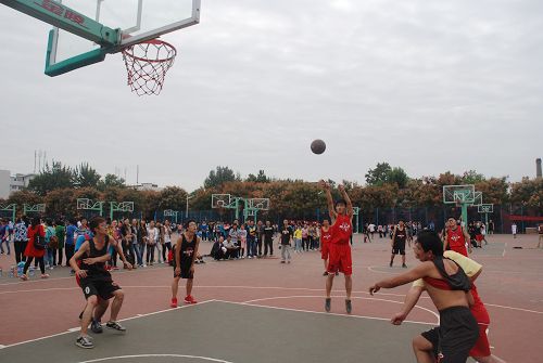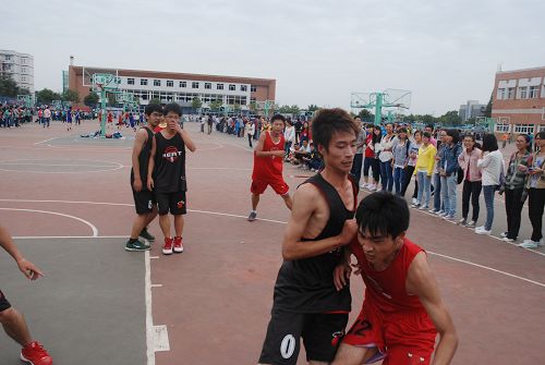 为丰富2013级新生大学生活,培养新生们团结互助的精神,9月24日,由学院体育部主办的新生篮球对抗赛在在北校篮球场上火热开赛。