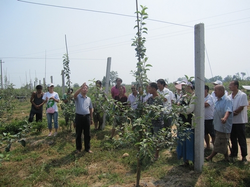 8月22日至23日,我院赴白水苹果试验示范站服务队在试验站果树学教授梁俊的带领下分别来到比较典型的矮化树新建园和乔化树老果园参观。