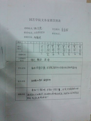 家教工作也取得丰硕成果,“通过8周对我孩子的辅导,孩子学习有很大的进步,非常感谢,希望学校今后还能安排这样的活动。”受家教学生刘佳康家长李霞给家教小老师赵凯茜给出了这样的评价。一名小学生在日记中这样写道:“我有一位美丽的小老师,通常我称她为姐姐,她很有耐心,虽然我很调皮,也很好动,记得她刚来的时候我故意捣乱,故意不听她讲课,可她没有生气,而是和我一块玩游戏,边玩游戏边告诉我,该玩的时候要好好玩,该学习的时候要专心学习,我以前是看电视时顺便写两行字,作业的质量当然不行,但现在不同了,我学习和玩两不误。”家教感言本上记录了家教小老师曲姝颖的感想“收获了孩子获得知识后幸福的笑脸,更多的收获还是对于我自己,提高了与孩子的沟通能力,提高了自己的耐心,更重要的是自己那种瞬间长大的感觉,那种随之而来的责任感,那种明白了父母家长良苦用心的豁然开朗…”