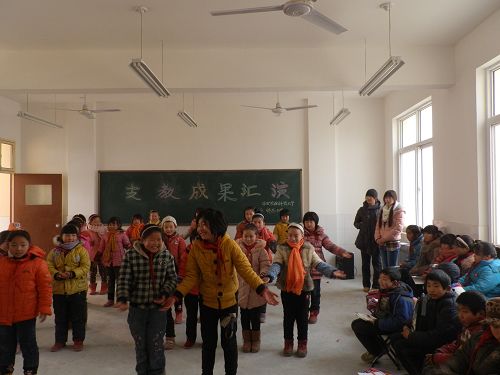 截至2012年12月26日,bat365官网登录入口爱心助教活动圆满结束,为了对本学期支教活动作一个总结,同时迎接新年,当日下午,支教团队在邰西小学开展了文艺汇演活动,汇报展示了本学期教学成果。汇演活动中,支教小老师和学生们同台表演了诗歌朗诵及舞蹈节目,学生们优秀的表现展示了支教小老师们本学期优良的教学成果,赢得了邰西小学老师一致赞同与认可。为对支教老师们的辛苦教学以及他们在本学期为邰西小学教学所做的贡献表示感谢和肯定,邰西小学校长给小老师们赠送了笔记本,并希望下学期能继续合作。