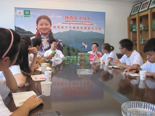 第一站我们前往的目的地是午子绿茶责任有限公司,“午子绿茶”的办公室主任陈力和技术部齐部长接待了我们。座谈会中给我留下印象最深的就是陈主任给我们介绍午子生产的茶叶只有绿茶一种,他们倾向专一的研究与生产。一位日本艺术家带美国导演去认识日本茶道文化,在破旧的农舍前,看到老妇人蹒跚而来只带一个茶碗,又走出去提过来铜壶,然后端出茶盘——每次只带一件东西。艺术家说:这就是茶道。