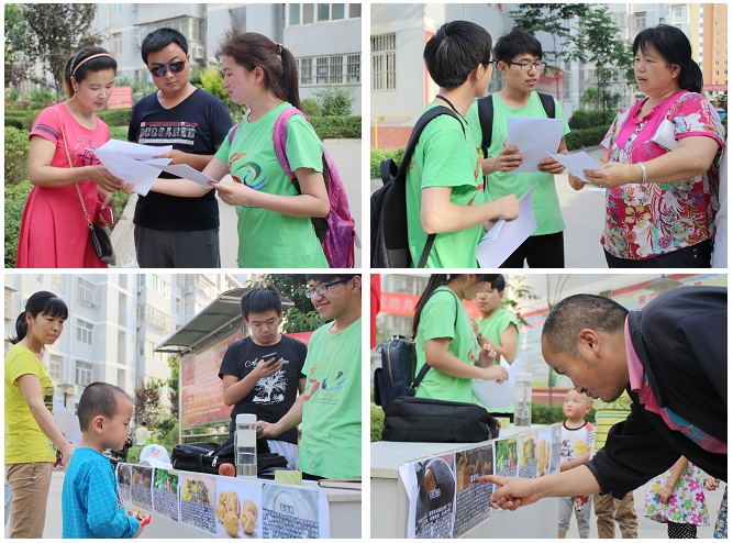 活动前夕,同学们在社区宣传栏张贴了宣传海报,引得居民驻足围观,并引发了居民对于食品安全问题的积极讨论。当天下午,活动如期在社区内展开,同学们分为四组,按照分配好的区域向小区居民发放宣传单,并讲解食品安全有关知识以预防食物中毒方法。居民与同学共话食品安全,畅谈健康问题。