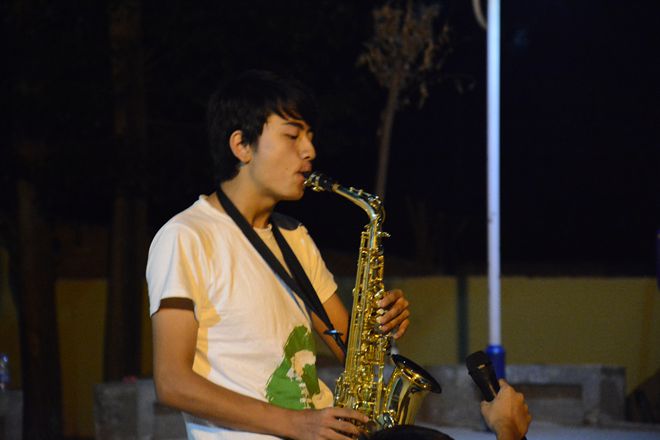 为给村民带来最完美的晚会,下午4点,队员和小朋友们就来到了村里的活动广场,开始布置现场,积极进行节目彩排。8点,文艺汇演正式开始。主持人在台上向观众致辞,介绍表演节目。孩子们都多才多艺,和他们的小老师们合作表演了十余个节目,如舞蹈《倍儿爽》,《小鸡小鸡》,《小苹果》,合唱《当》,《奔跑》等,还有萨克斯表演《月亮代表我的心》,都十分精彩。十余个节目有次序地进行着,学生和小老师在台上热情的演唱。在热烈的晚会氛围中,还有一名藏族朋友为村民们即兴演唱了一首藏语歌曲。