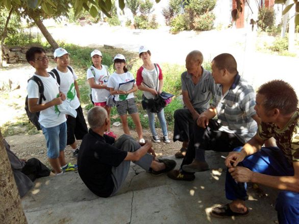 7月29日上午9点我们就开始了调研工作。我们调研的主要形式是挨家挨户走访询问。农户们亲切地招呼我们,他们脸上淳朴的笑容消除了我们之前所有的紧张和担忧。通过对当地几家种植大户的走访和攀谈,我们对猕猴桃的主要病害以及销售情况有了一定程度的认识和了解。农户告诉我们现在猕猴桃面临的最大病害就是溃疡病,这是一种很难根治的病,也是导致猕猴桃减产的主要原因。在热心农户的带领下,我们随后来到猕猴桃种植基地。在农户的实际操作示范中对猕猴桃的种植知识有了进一步的了解。