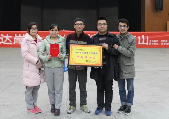该活动由校团委、校研究生会主办,共有十六个学院参与其中,主要包括团体赛、男子单打、女子单打三个项目。比赛中我院队员在赛场上奋力拼搏的表现给大家留下了深刻的印象。经过激烈的角逐,王鑫同学获得女子单打第三名,我院代表队获得团体第四名的好成绩。