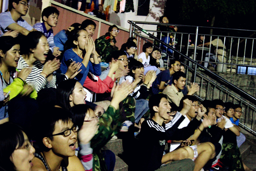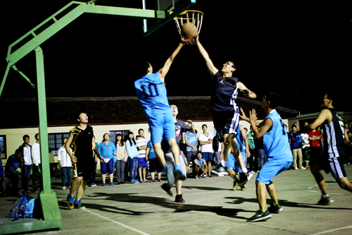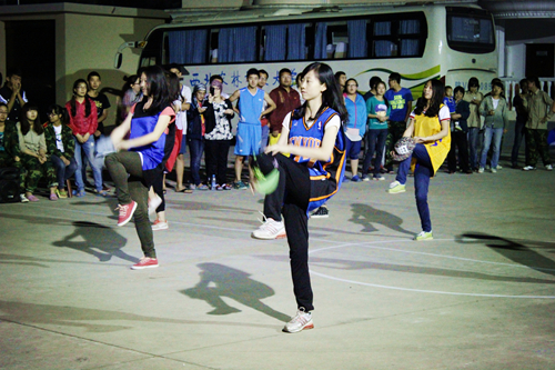 比赛一开始,双方队员都迅速进入状态,个个雄姿英发。球场上两院队员们你争我夺、你攻我守,双方队员激情四溢,争夺异常精彩。比赛过程中,裁判员秉公执法,保证了比赛的公平公正、可观赏。场下啦啦队热血沸腾,助威声、呐喊声一浪高过一浪,响彻美丽的秦岭山中。在篮球队员休息期间,啦啦队员上场跳舞,增强现场气氛。