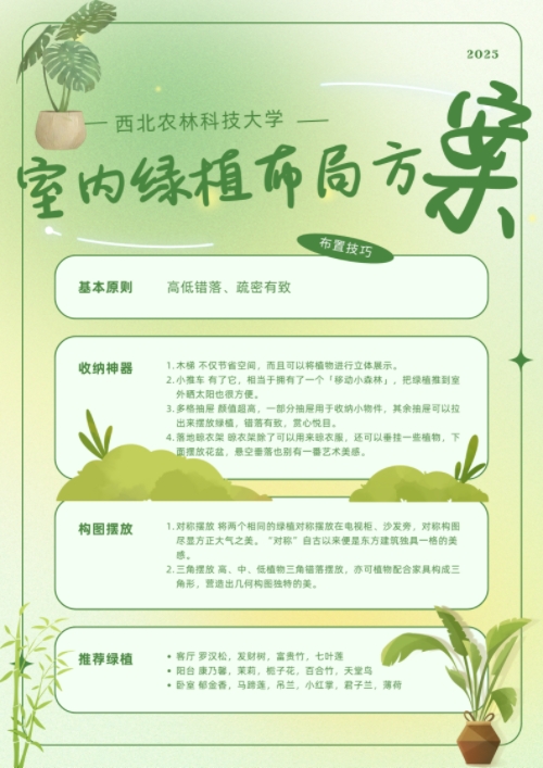 活动期间,同学们紧密结合家庭空间布局与现有绿植状况,融入所学园艺知识,设计出一系列极具创意的园艺改造方案。园艺 2403 班的郝清心同学依据高低错落、疏密有致的原则,采用对称摆放与三角摆放相结合的方式布局绿植;园艺 2202 班的赵子煜同学则巧妙利用家庭角落空间,打造出小巧精致的绿植角落。这些作品不仅美化了生活环境,提升了居住品质,更让人们在繁忙生活中寻得一片宁静与惬意之所。
