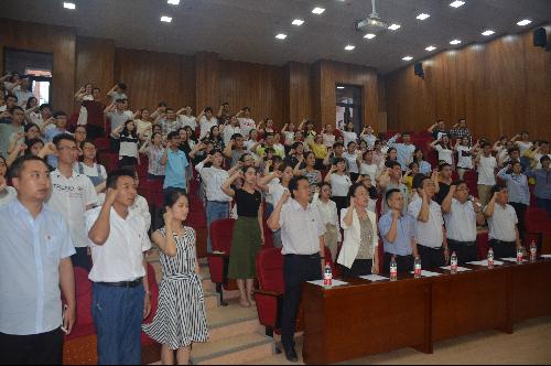 表彰大会在雄壮的国歌声中拉开序幕。在学院党委书记黄德宝的带领下,86名预备党员面向党旗庄严宣誓,到场正式党员重温了入党誓词。