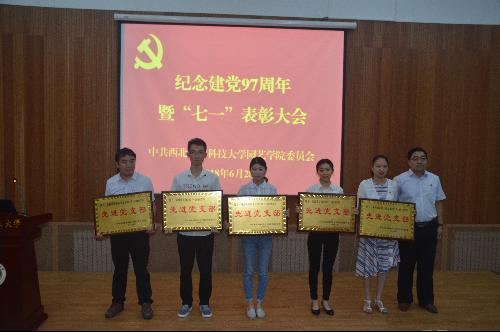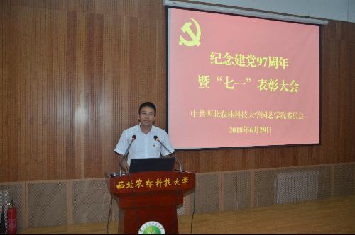 学院党委委员李建明宣读了表彰文件,设施创新团队党支部等5个党支部被授予“先进党支部”称号,唐海波等21位同志被授予“优秀共产党员”称号,余有本等8位同志被授予“优秀党务工作者”称号。学院领导和党委委员为先进集体和个人颁发了获奖证书。优秀党员代表贾建华、优秀党务工作者代表余有本分别做了表态发言,向全院党员发出了争做优秀党员、争当师生楷模的号召。