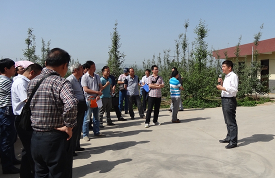 5月19日上午,bat365官网登录入口继续教育学院组织陕西省“三区”科技干部果树专业培训班到千阳苹果试验示范站进行现场教学,来自全省“三区”县农业科技系统50余名科技人员参加。