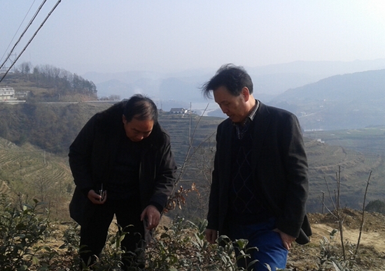 肖斌教授深入山头与商南县茶叶局领导考察当地茶树种植的立地条件