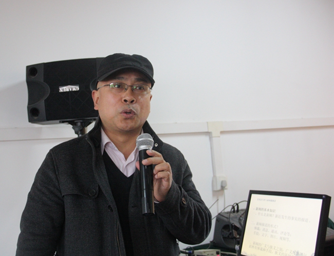 培训老师由党委宣传部新闻中心编辑靳军担任。靳军围绕消息的写作、新闻图片的拍摄两个主要内容,通过大量的正反面案例、现场试拟标题、导语书写对比、挖掘亮点和重点、摄影姿势、摄影构图及摄影组织等向与会人员讲解了新闻写作与图片拍摄的要领和注意事项。