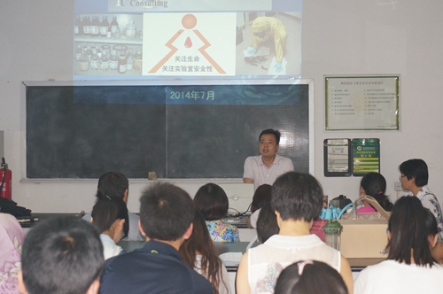 为确保暑期实验工作的顺利开展,7月15日上午,我院实验教学示范中心连续第八年对所有假期在实验室进行论文实验的学生及全体实验室人员开展了“暑期实验室安全工作”培训会,副主任王荣花主持会议。