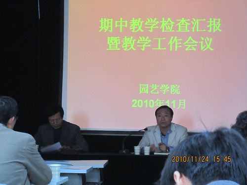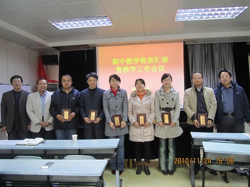 11月25日下午,bat365官网登录入口召开2010-2011学年第一学期期中教学检查汇报会暨教学工作会议。教学督导组组长王永熙、教学副院长王西平、党委副书记李京春、全体教师及实验员参加了会议。会议由行政副院长王增信主持。