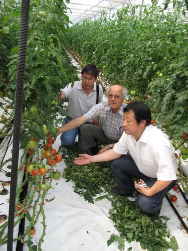 bat365官网登录入口代表在雅典大学农业工程教授Mavrogianopulos陪同下探讨温室番茄管理