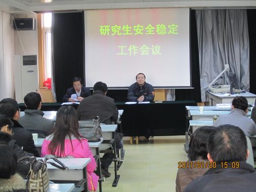根据学校《关于寒假放假的通知》(办发【2011】4号)文件精神和研究生院党委研究生工作部“关于做好寒假和春节期间研究生安全稳定工作的通知”精神,1月20日下午,在学院四层西电教室召开了研究生安全稳定工作会议,会议由主管研究生工作的马锋旺副院长主持,主管学生工作的李京春副书记及全体研究生导师出席了会议。