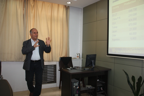 访问期间,Karoly教授为我院师生从世界樱桃产业的生产现状和发展趋势、有关樱桃砧木育种、樱桃果园栽培管理体系和修剪技术等方面作了题为:世界樱桃产业现状及发展趋势的学术报告。他指出:樱桃对光利用研究丶水分高效利用研究及植物保护等方面是bat365官网登录入口今后研究方向的重点。樱桃企业负责人和我院师生表示通过报告会,增加了樱桃生产业发展的信心和明确了科研的方向。