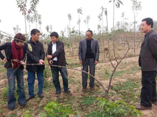 肖红喜副主任(左1)一行考察樱桃“V”字形栽培技术