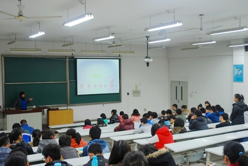 何玲老师从“创新能力的内涵”、“创新能力的分析”、“创新能力的培养”和“大学生创新和创业项目实施”等四个方面向同学们做了生动的报告。