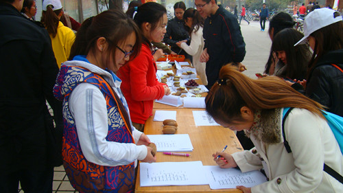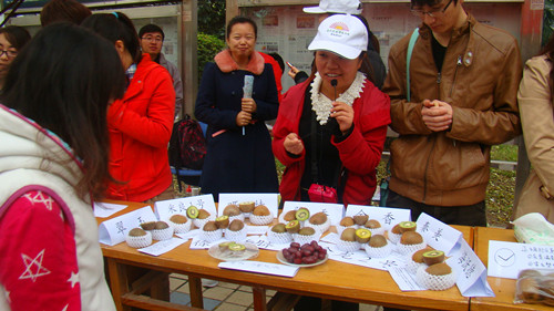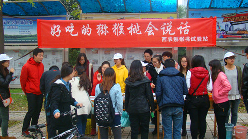 活动主要分为猕猴桃品种品尝,猕猴桃品种展示,问卷调查,关注猕猴桃主题微信四个部分。尤其是在展示猕猴桃12个品种的过程中,大家表现出了强烈的好奇心,并且就猕猴桃的品种改良、品质提升问题与驻站研究生进行了探讨。试验站专门为此次活动建立了微信公共平台,旨在与广大师生就猕猴桃相关问题进行长远的交流与互动。
