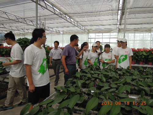 首先,园区经理纪先生在向队员介绍了示范园基本情况后,带领队员们深入大棚基地进行了参观调研。在“纪丰创意花卉”馆,队员们在一个大学生技术人员带领下认识凤梨、蝴蝶兰、海棠等花卉,学习了花卉栽培技术。在“人和兴园”蔬菜种植温室基地,队员们认真听取工作人员的讲解,了解了蔬菜幼苗培育、栽种、收获等一整套流程,上了一堂生动的实践课。队员们结合自己所学,或表达了自己的感受,或提出了自己的想法。