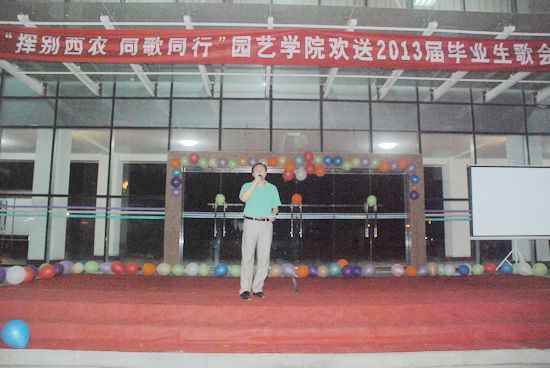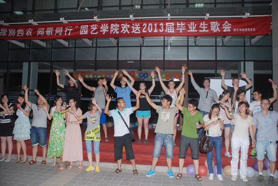 6月23日晚,我院举办的“挥别西农,同歌同行”欢送2013届毕业生歌会在南校区绣山活动中心广场拉开帷幕,学院党委副书记李京春、副院长王增信、辅导员郭东花及各学院研究生会主席团成员出席了此次活动,旨在为即将踏上工作岗位以及继续深造的毕业生送上我们真挚的问候与祝福,愿他们用最美的音符谱写自己最唯美的乐章。