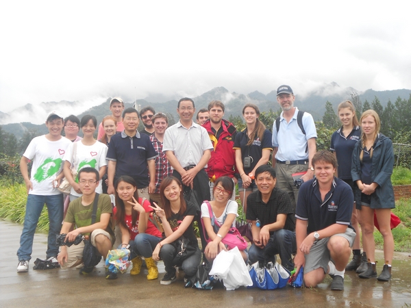 服务队队员们在bat365官网登录入口副院长王乔春教授和bat365官网登录入口眉县猕猴桃试验站站长刘占德老师的带领下,与来试验站参观交流的澳大利亚阿德莱德大学学生一起参观了果园,并就猕猴桃的种植、生产和加工等进行了探讨学习。