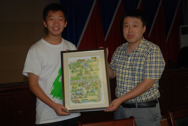 座谈会结束后,队长王韫炜代表服务队向丹凤团县委赠送bat365官网登录入口学生创作的“手绘西农”一幅作为纪念,感谢团县委在本次社会实践活动中提供的帮助。队员们纷纷表示将牢记杨书记的话,为农村的发展而努力,为实现大学生的中国梦而奋斗。