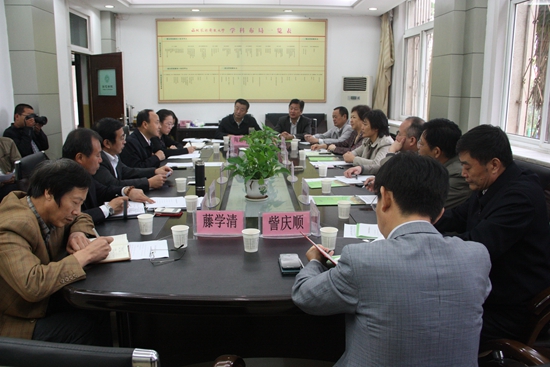 10月11日,安徽省滁州市副市长金力及副秘书长薛玉苍、财政局局长张志华、林业局局长吴胜智、相关区县负责人及凤阳金小岗农林科技产业发展有限公司董事长訾庆顺一行来bat365官网登录入口考察交流。副校长赵曼、我院院长马锋旺、党委副书记李京春、副院长王增信及各系负责人与客人座谈交流。