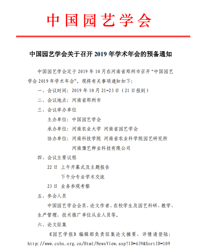» 中国园艺学会关于召开2019年学术年会的预备通知